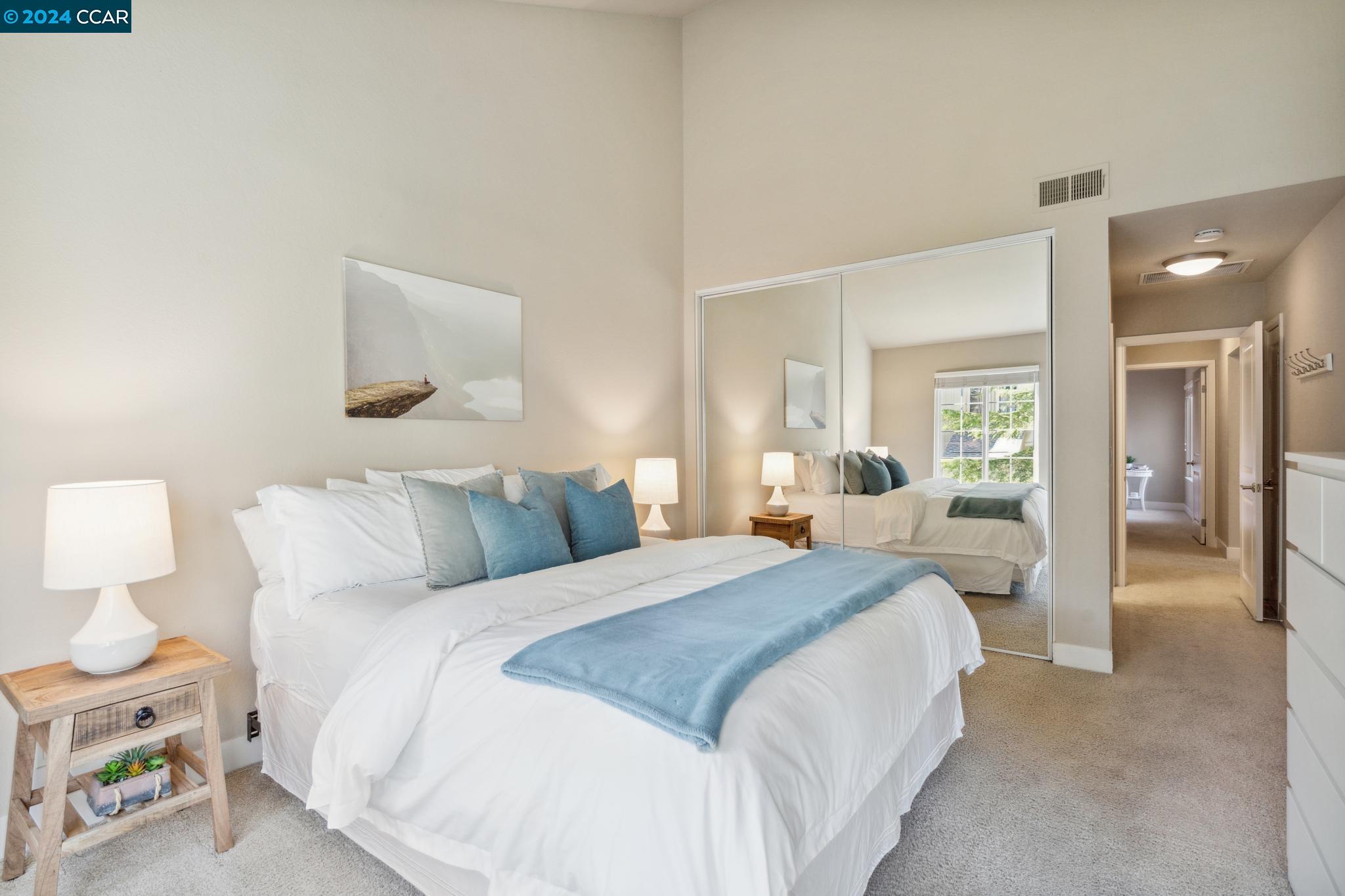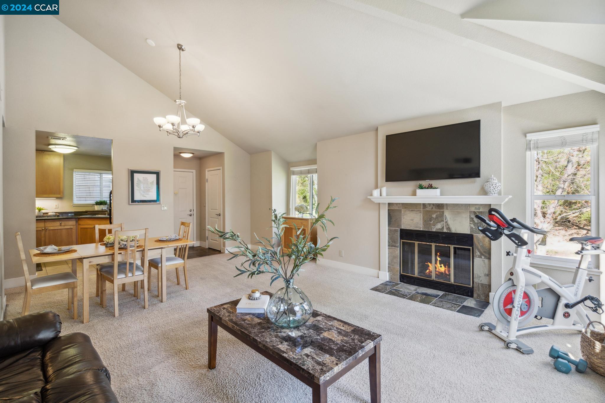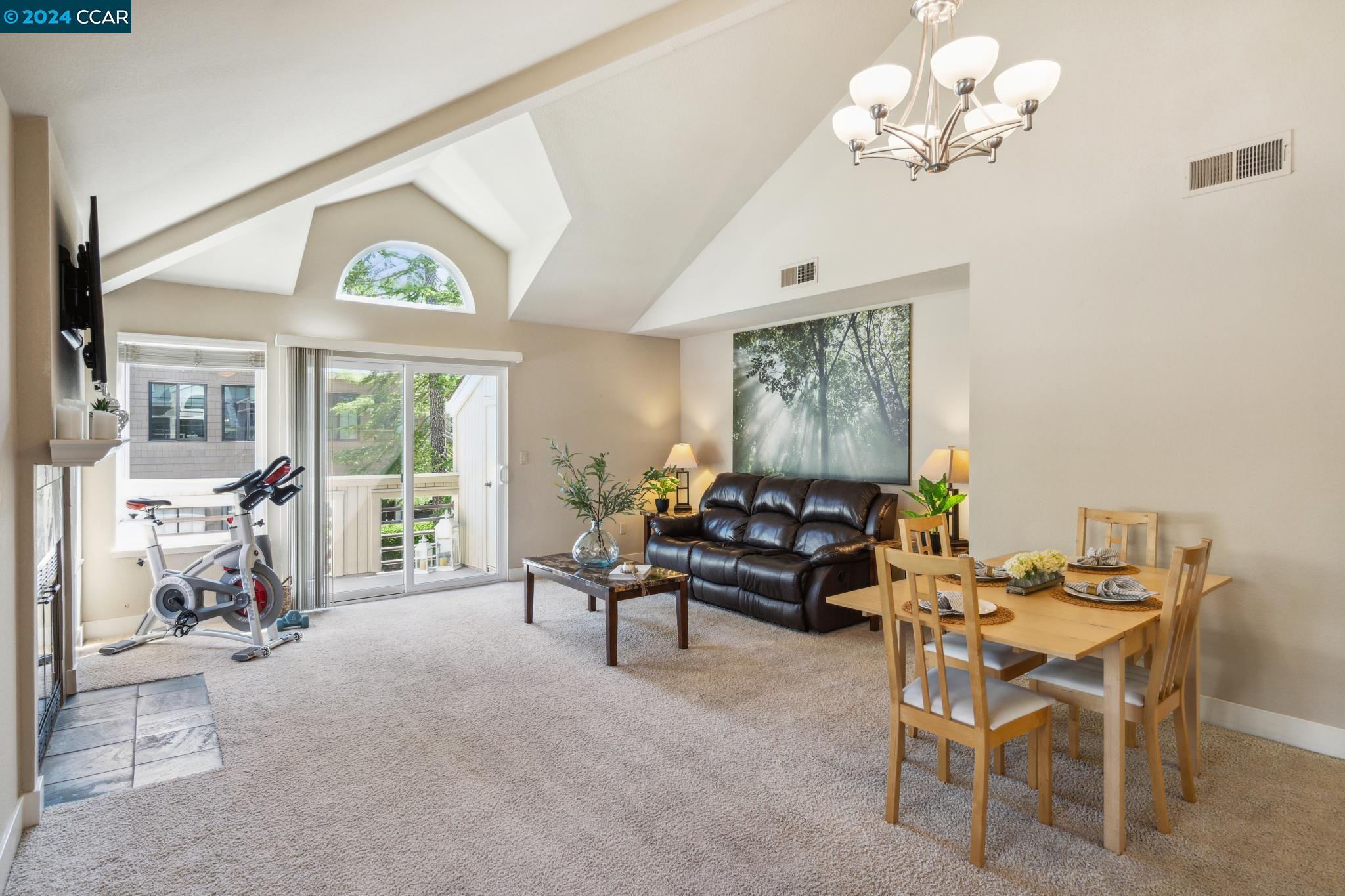 Welcome home to this top floor condo with extraordinary upgrades that make it truly stand out above the rest! Nestled among gorgeous greenery in a gated community, this corner unit with coveted vaulted ceilings, extensive storage, and a peaceful neighborhood is the perfect place to call home. Step inside your spacious living room with abundant natural light. Cook, entertain, and admire the view of Mt. Diablo from your new kitchen featuring granite counter tops and under cabinet lighting. The luxurious primary suite hosts two large closets and an en suite bathroom. An additional bedroom and updated bathroom await you at the other end of the hallway. Step out onto the private balcony or simply look in any direction out of the newer, double pane windows to views of stunning nature. This unit occupies the corner garage with a bump out for storage, plus additional parking conveniently located just outside of the unit. Copper Ridge is a spectacular neighborhood with HOA amenities including tennis courts, pools, fitness center, clubhouse and walking paths. This condo is within a top-rated school district, adjacent to Canyon Lakes Golf Course, and located just minutes away from the freeway. San Ramon boasts popular shops and restaurants at Bishop Ranch City Center, hiking trails, & more!