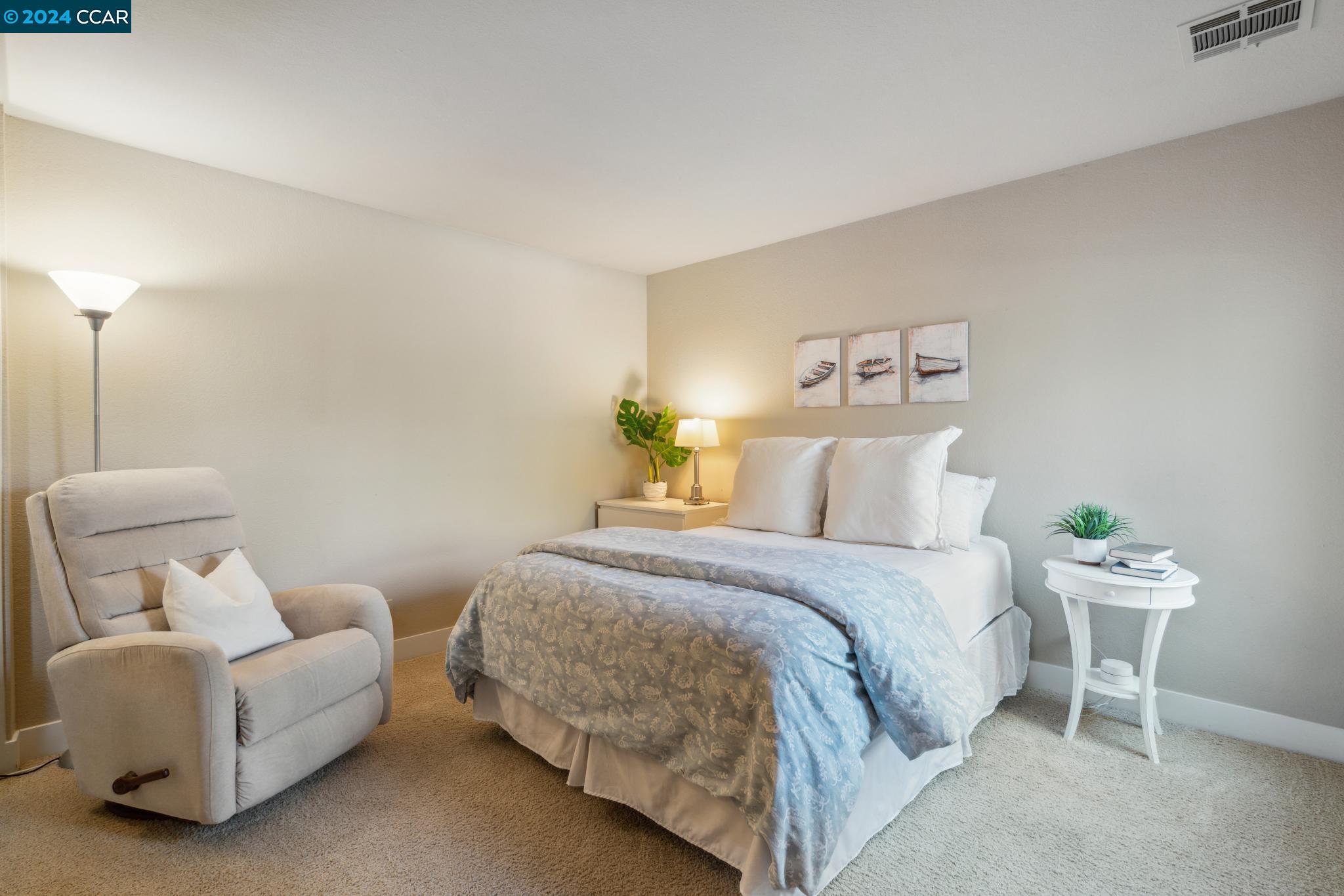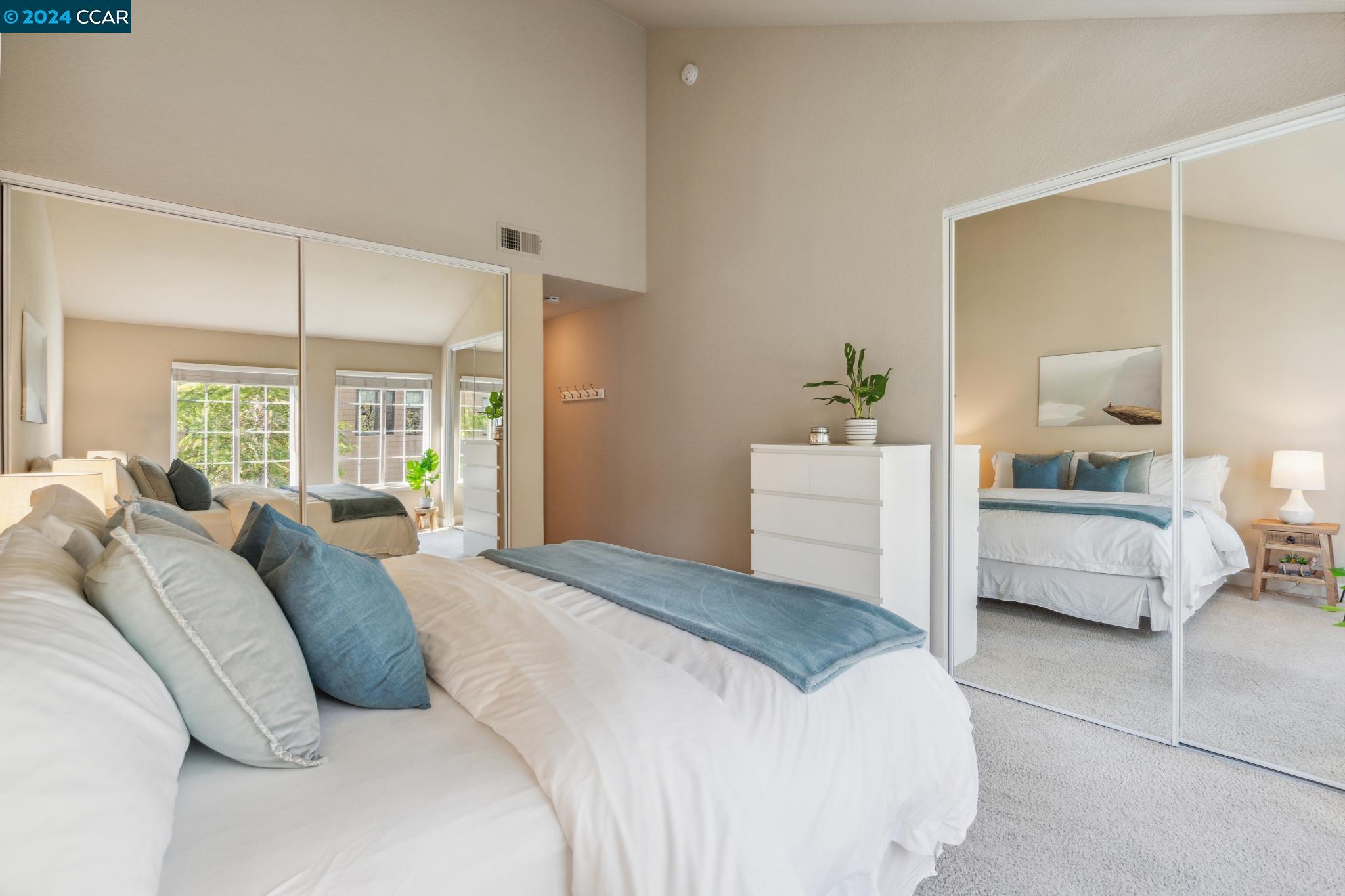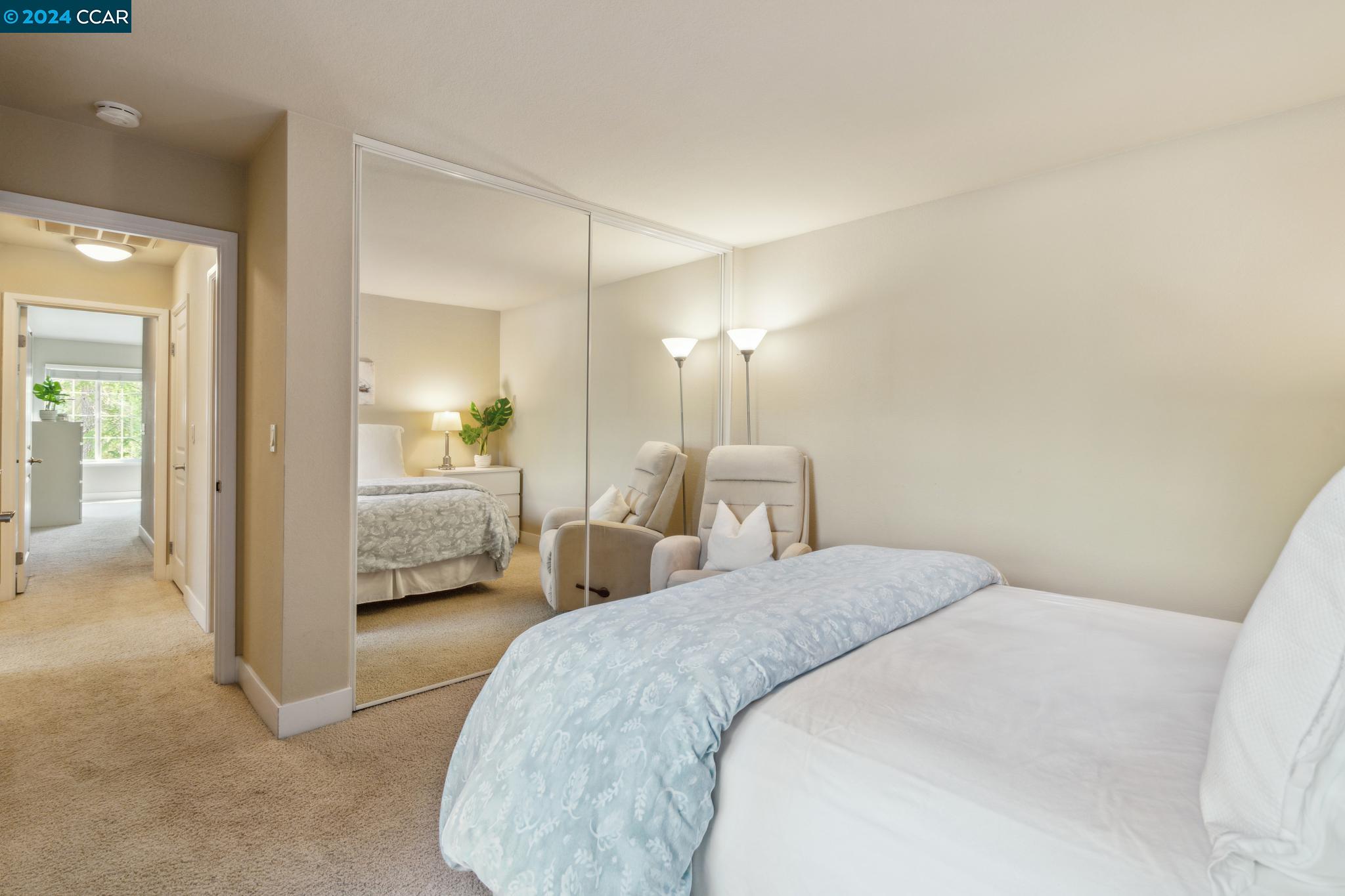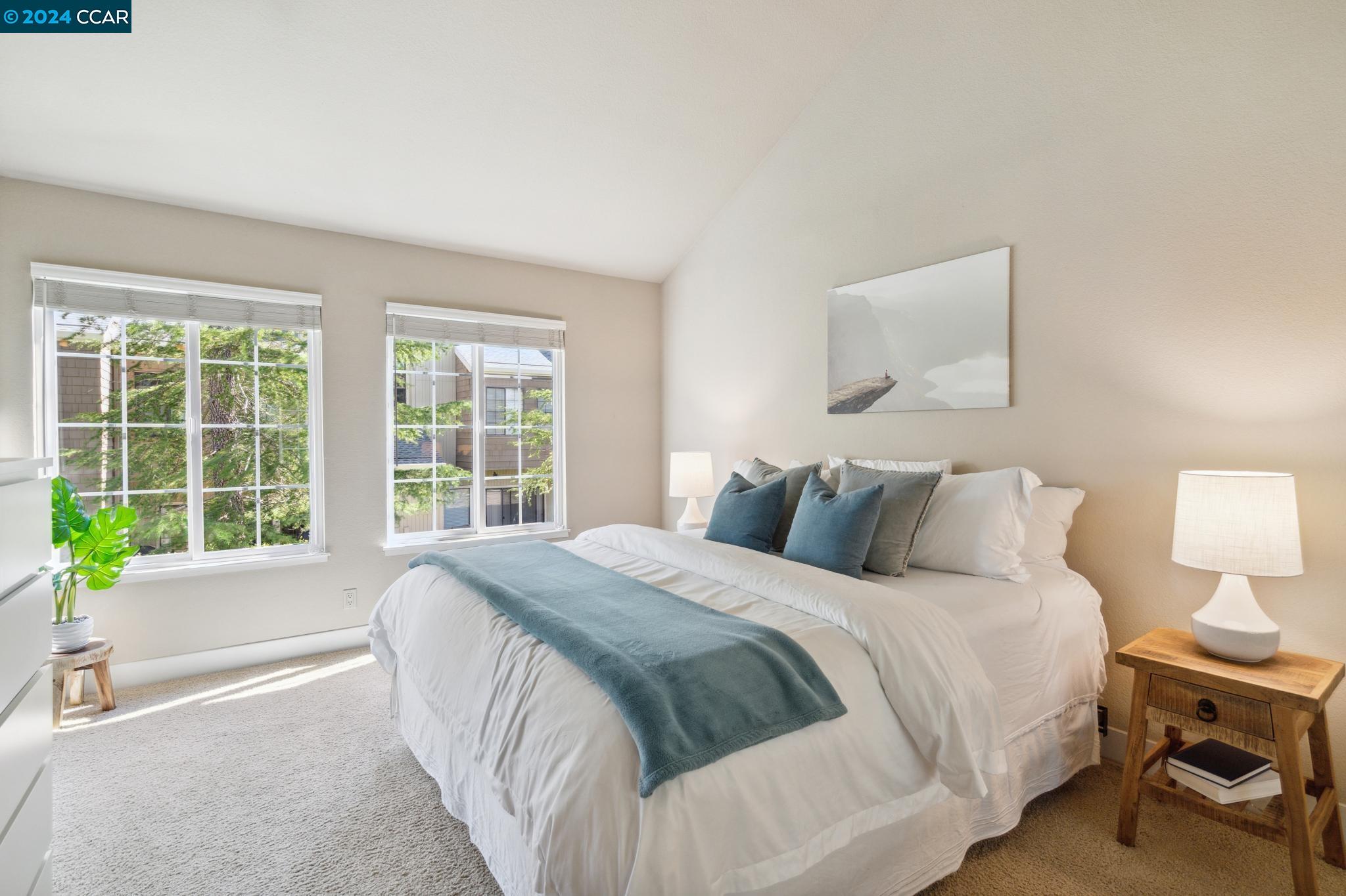 Welcome home to this top floor condo with extraordinary upgrades that make it truly stand out above the rest! Nestled among gorgeous greenery in a gated community, this corner unit with coveted vaulted ceilings, extensive storage, and a peaceful neighborhood is the perfect place to call home. Step inside your spacious living room with abundant natural light. Cook, entertain, and admire the view of Mt. Diablo from your new kitchen featuring granite counter tops and under cabinet lighting. The luxurious primary suite hosts two large closets and an en suite bathroom. An additional bedroom and updated bathroom await you at the other end of the hallway. Step out onto the private balcony or simply look in any direction out of the newer, double pane windows to views of stunning nature. This unit occupies the corner garage with a bump out for storage, plus additional parking conveniently located just outside of the unit. Copper Ridge is a spectacular neighborhood with HOA amenities including tennis courts, pools, fitness center, clubhouse and walking paths. This condo is within a top-rated school district, adjacent to Canyon Lakes Golf Course, and located just minutes away from the freeway. San Ramon boasts popular shops and restaurants at Bishop Ranch City Center, hiking trails, & more!